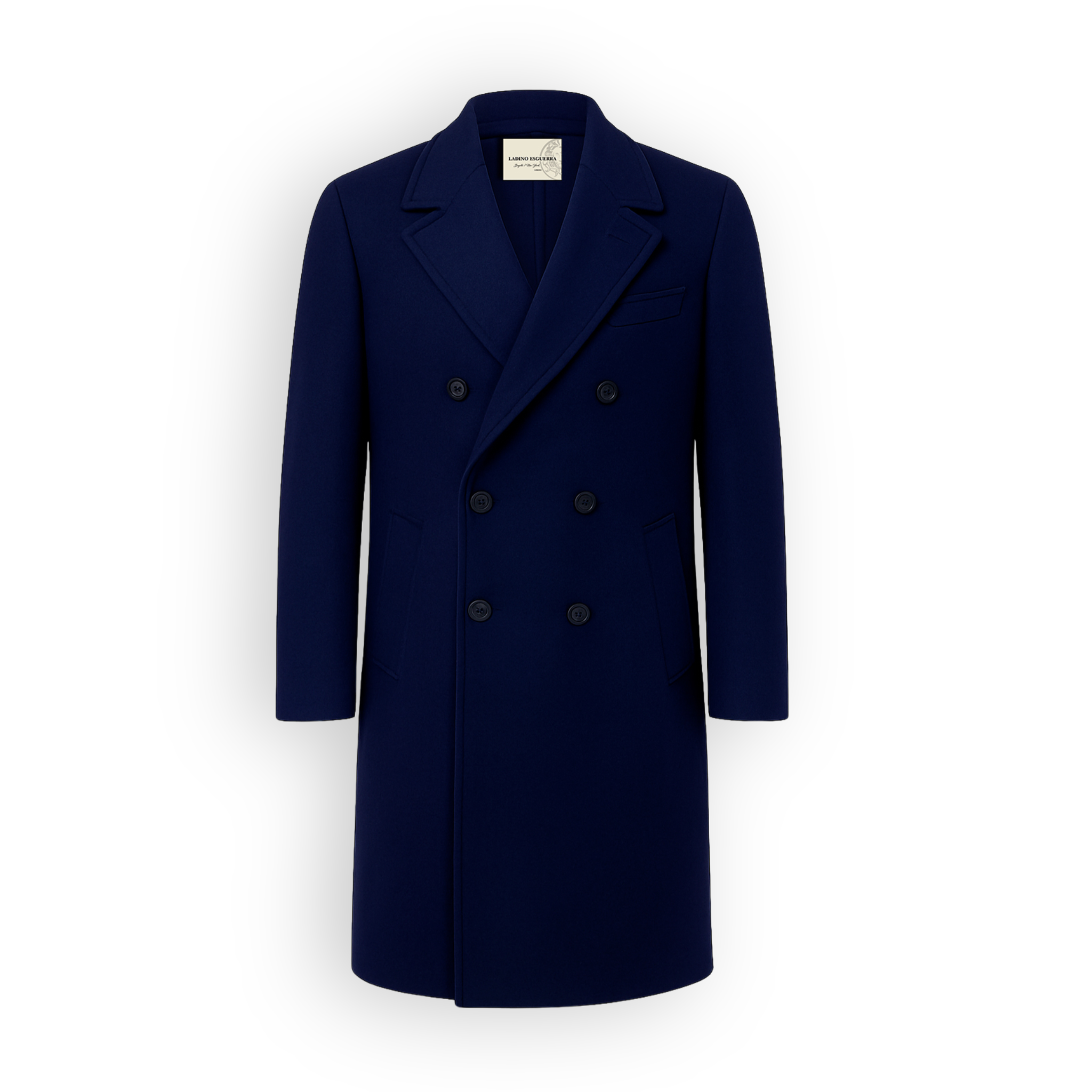 El azul profundo no es solo un color: es un estado de ánimo. Es el eco del mar al anochecer, el misterio del cielo antes del alba, el reflejo de un hombre que se sabe dueño de su historia. Este abrigo es un manifiesto de calma poderosa, pensado para quienes entienden que el verdadero impacto viene del silencio, no del estruendo.