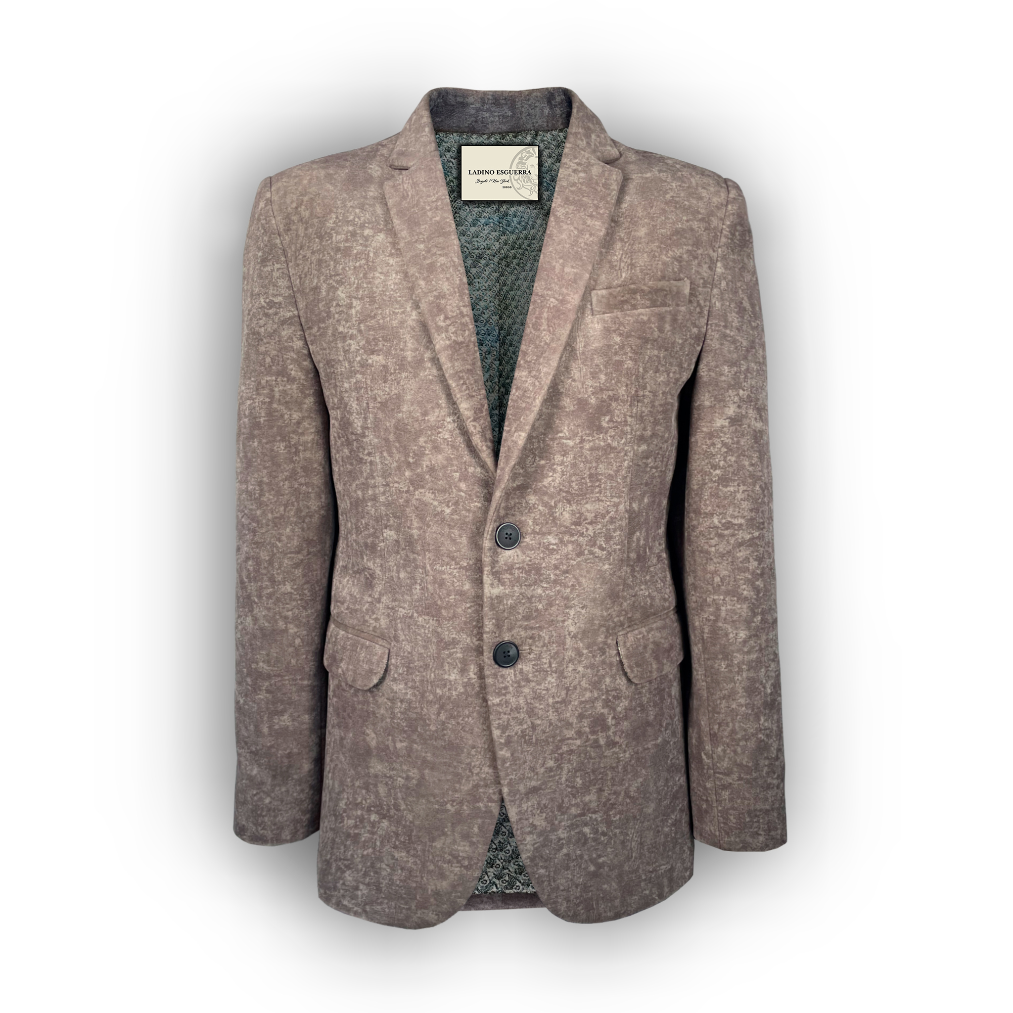 Con una estética que evoca texturas minerales y paisajes erosionados por el tiempo, el blazer “Bruma Terracota” se destaca por su tonalidad entre rosa viejo y tierra, con un sutil efecto desgastado que lo convierte en una pieza única y con carácter.