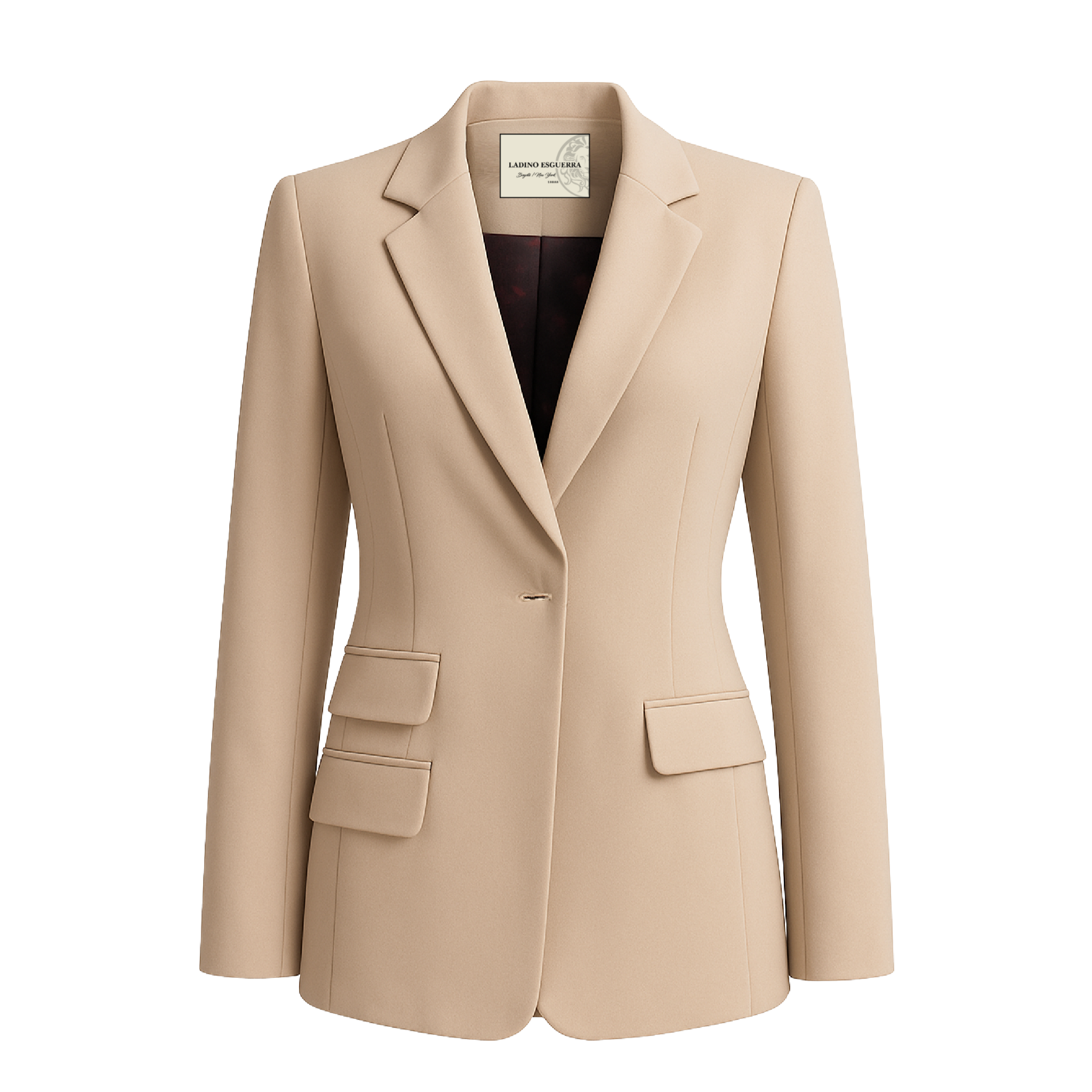El blazer Sahara Épure es la personificación de la sofisticación depurada. En un tono beige arena atemporal, su diseño sin botones visibles y corte entallado tipo sastre ofrece un aire arquitectónico y moderno. Las solapas clásicas y los bolsillos de doble solapa aportan estructura, mientras que el ojal decorativo al frente actúa como guiño minimalista.